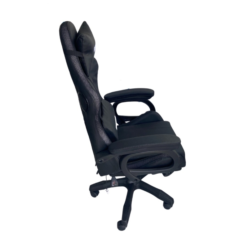 Silla gamer en color negro con luz led, parlantes de alta potencia y masajeadores