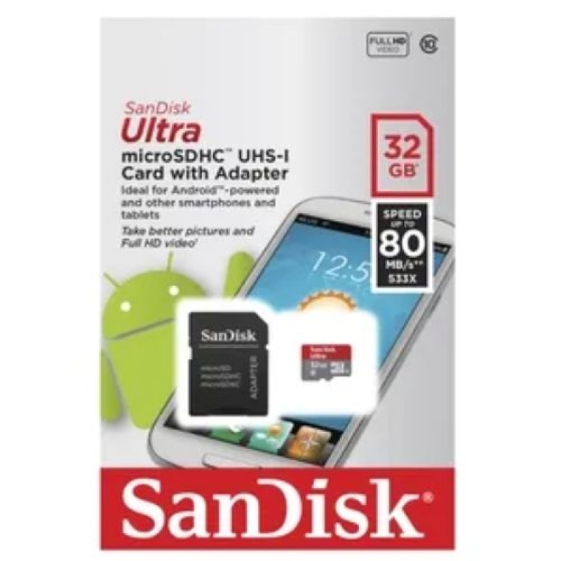 Micro-SD SANDISK 32GB microSDHC-UHS-I Card With Adaptador 100MBs Clase 10